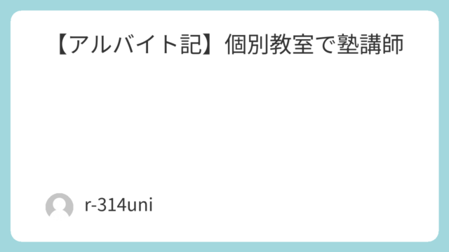 アルバイト3つ所属中!そのうちの一つ、個別指導のOOOを紹介します。テレビCMでお馴染みのあの塾です。働くきっかけ面接で聞かれたこと実態実際に見たことのある生徒感想働くきっかけ 大学入学から少し。徐々に大学生活に慣れ、アルバイトを始めよう!...